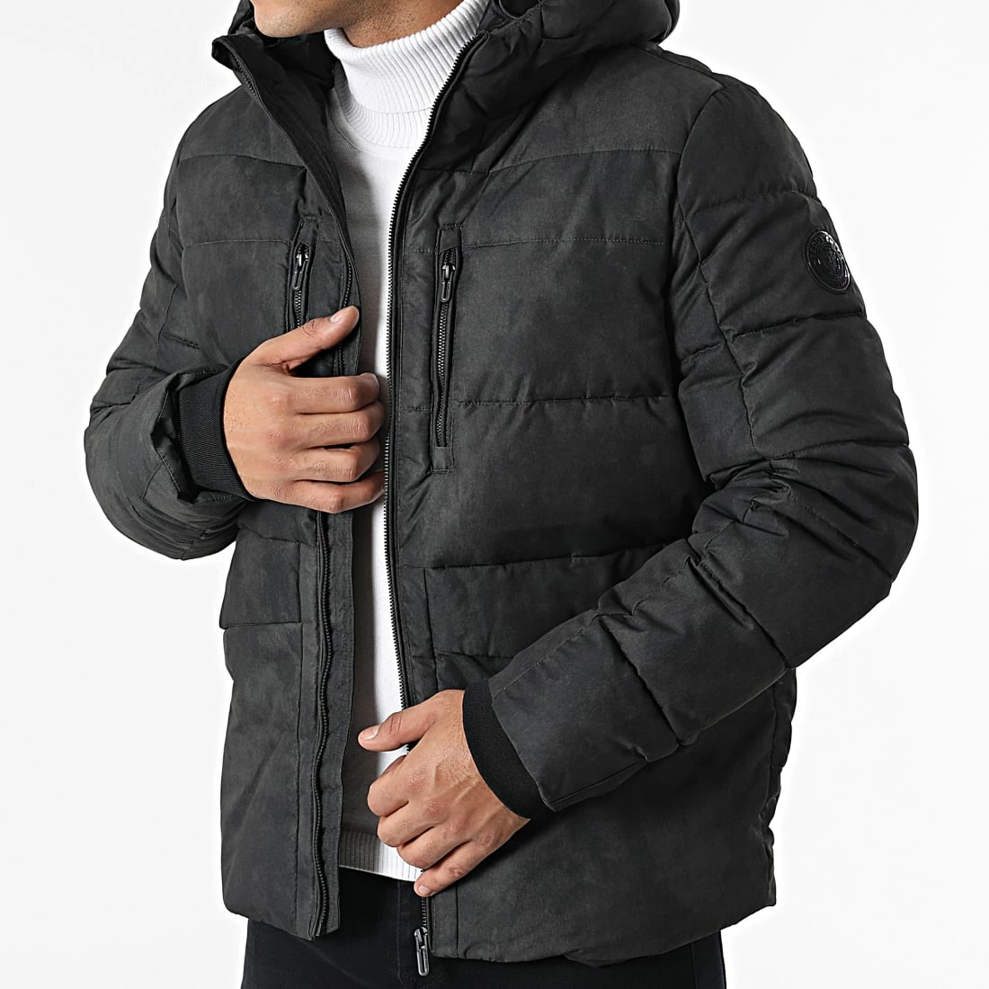 • Doudoune capuche chaude tendance avec patch Teddy Smith brodé à l’épaule