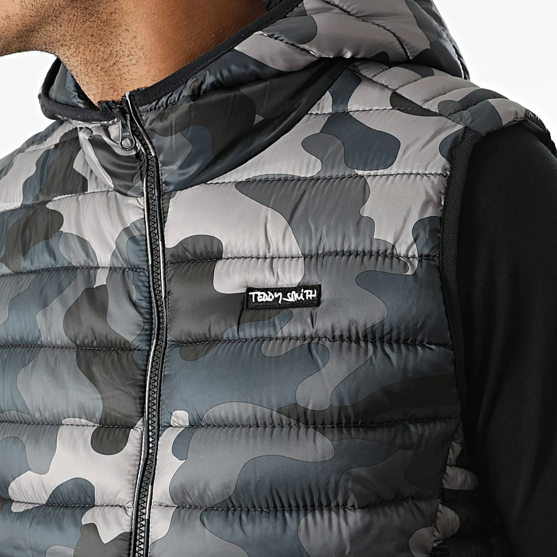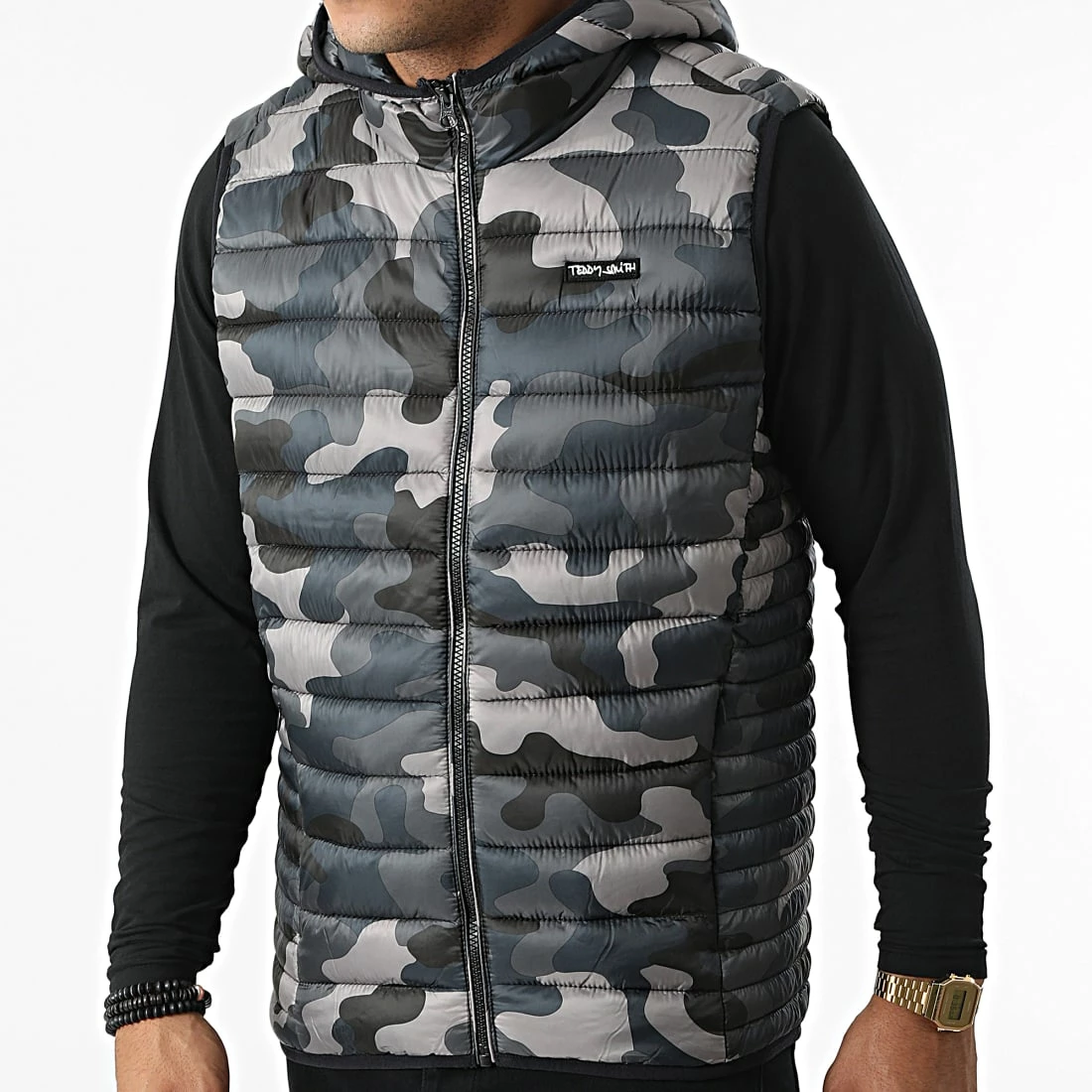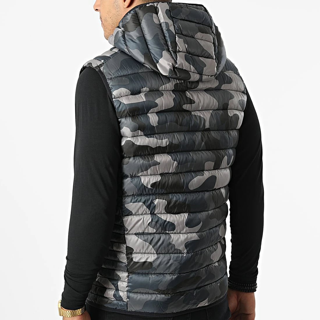• Doudoune sans manches à capuche et motif camouflage