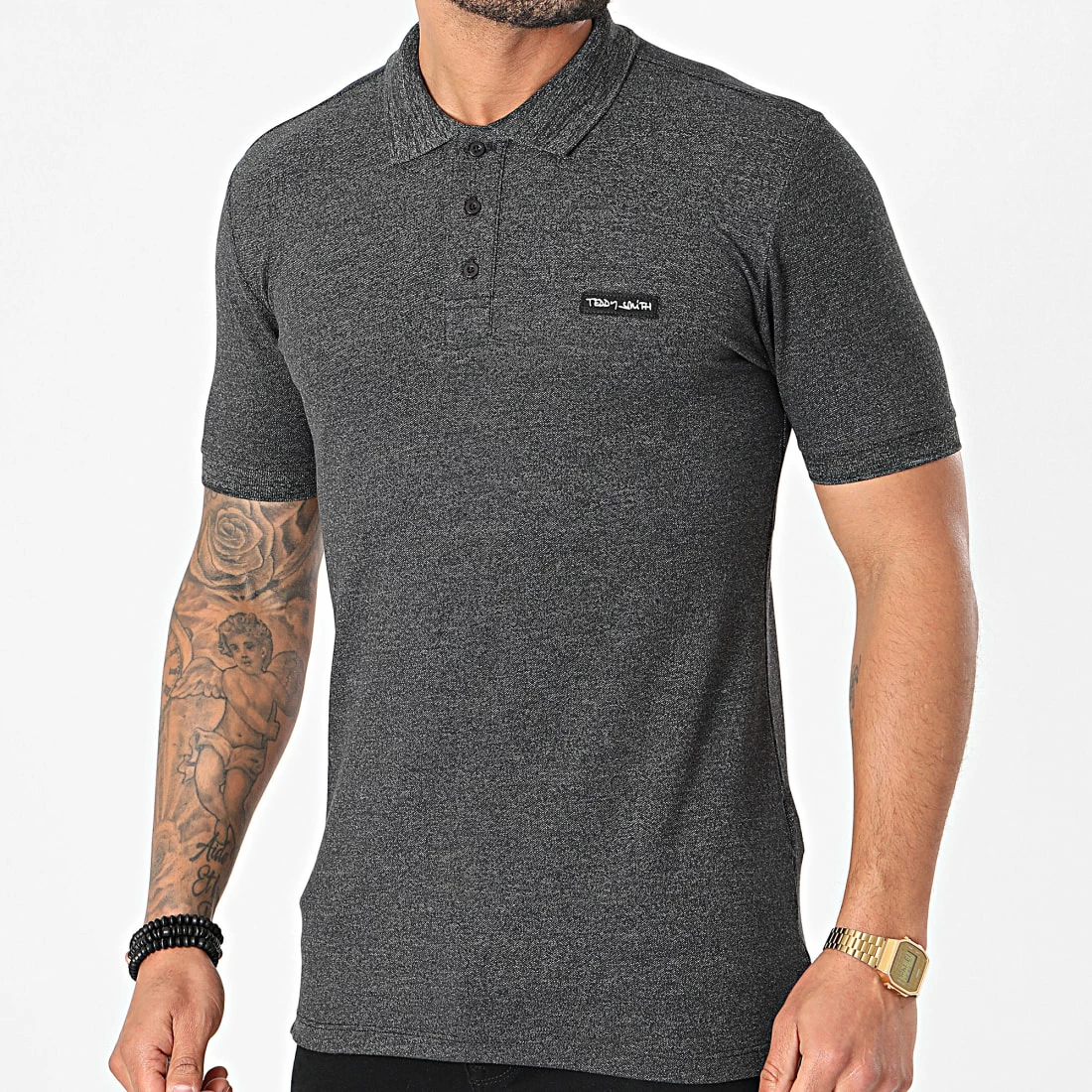 • Polo à manches courtes chiné avec patch Teddy Smith sur la poitrine