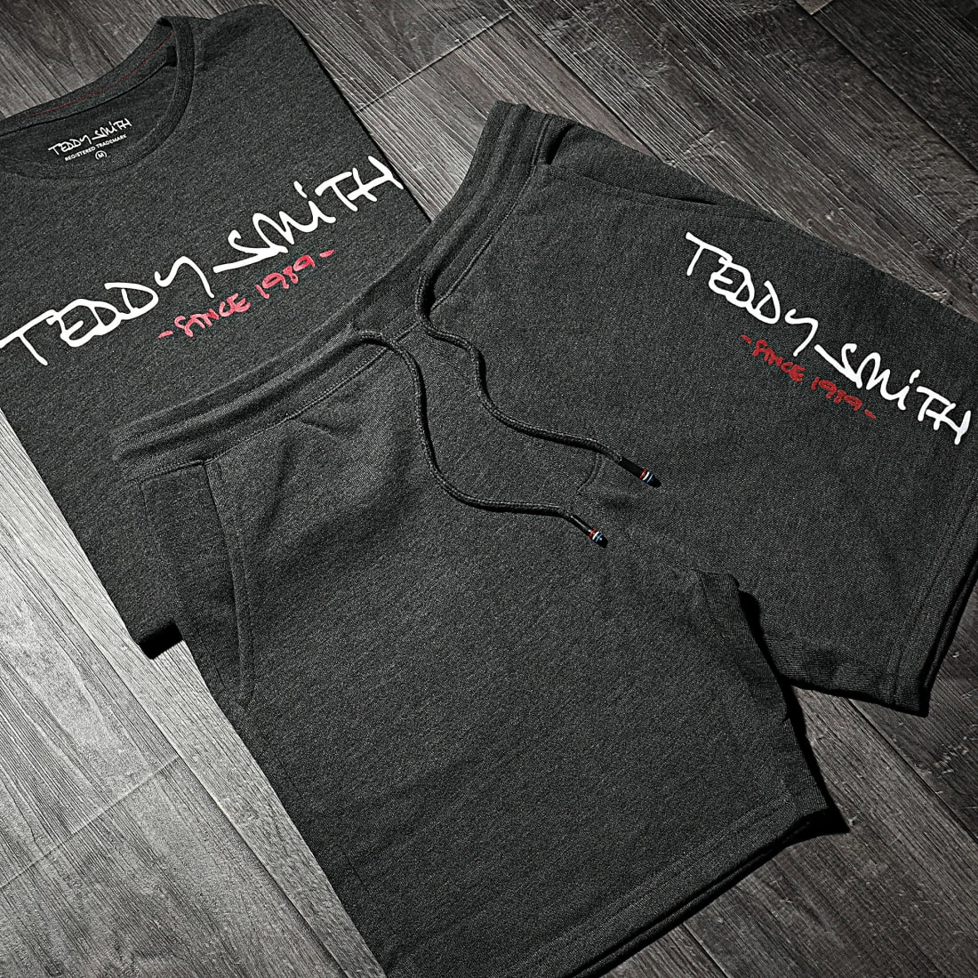 • Short de sport chiné avec visuel Teddy Smith aspect feutrine à l’avant