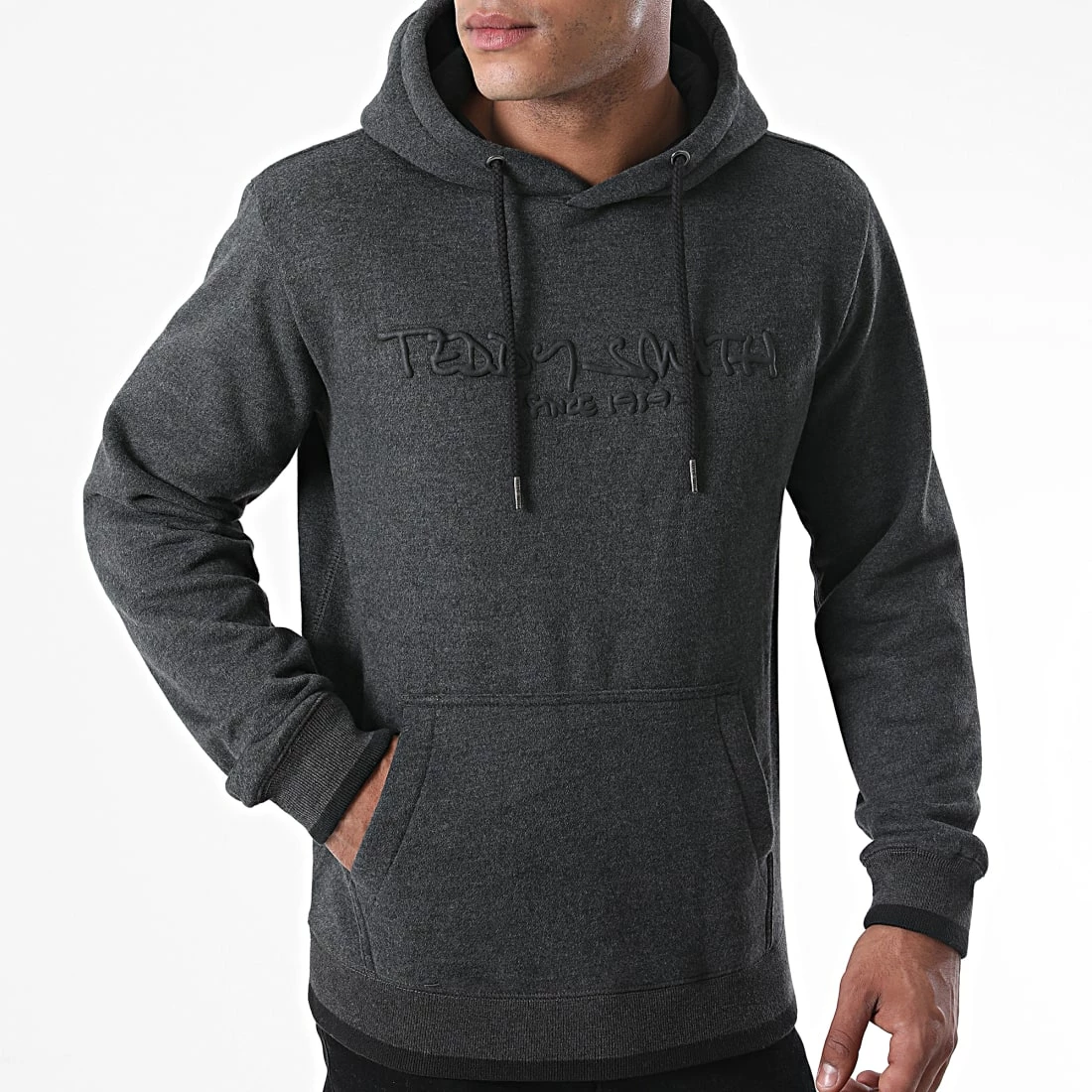 • Sweat capuche doux et chiné avec visuel Teddy Smith en relief à l’avant