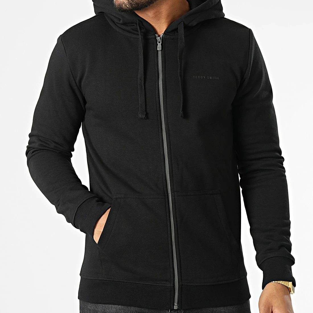 • Sweat zippé capuche brodé patch Teddy Smith sur la poitrine