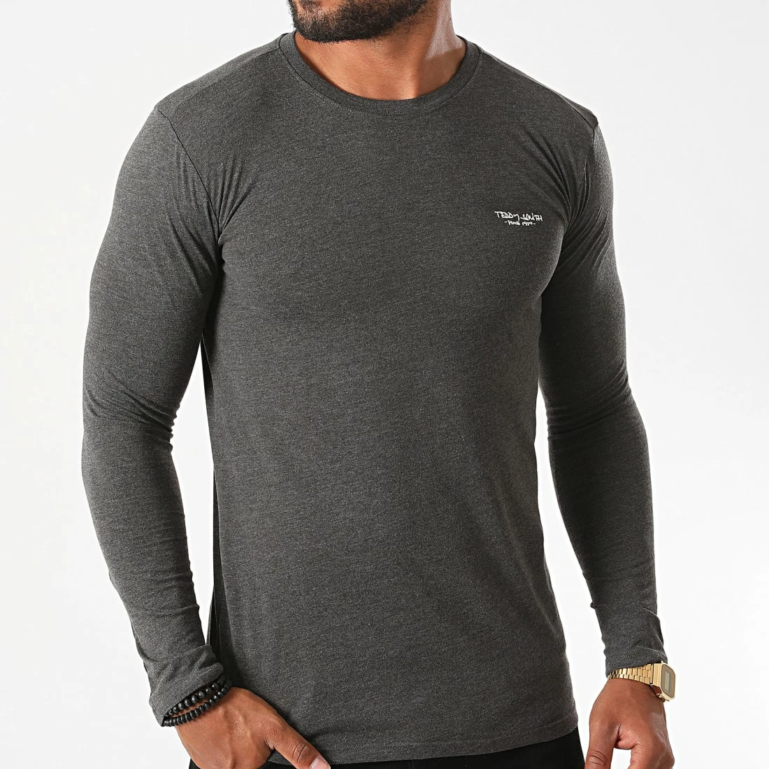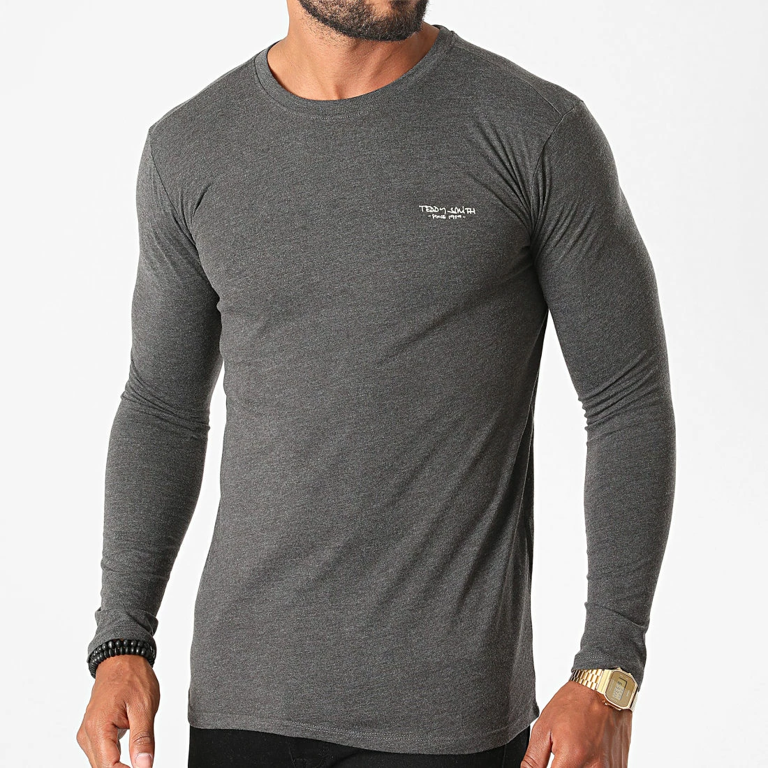 • Tee shirt manches longues en coton stretch imprimé Teddy Smith en relief sur la poitrine