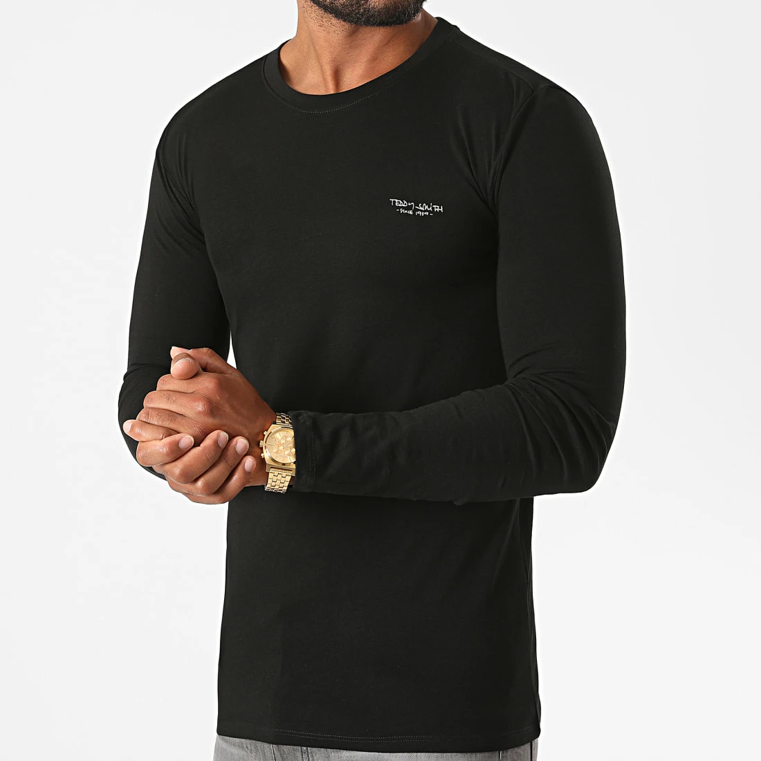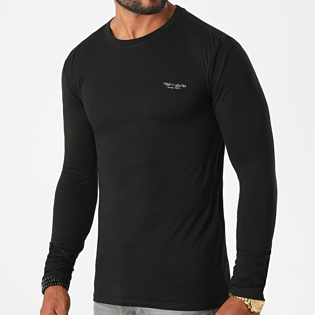 • Tee shirt manches longues en coton stretch imprimé Teddy Smith en relief sur la poitrine
