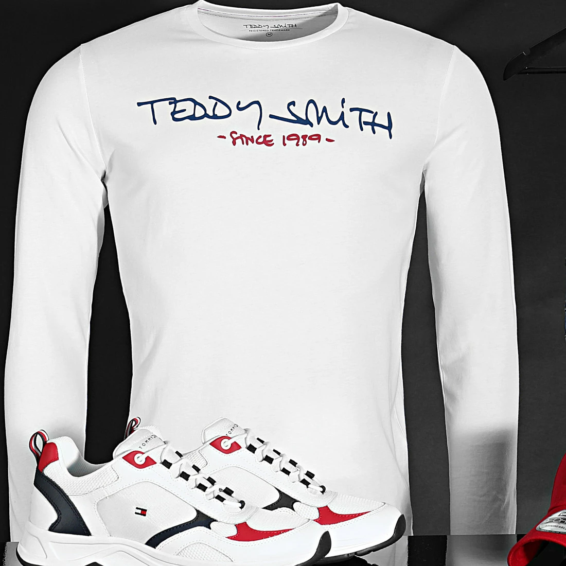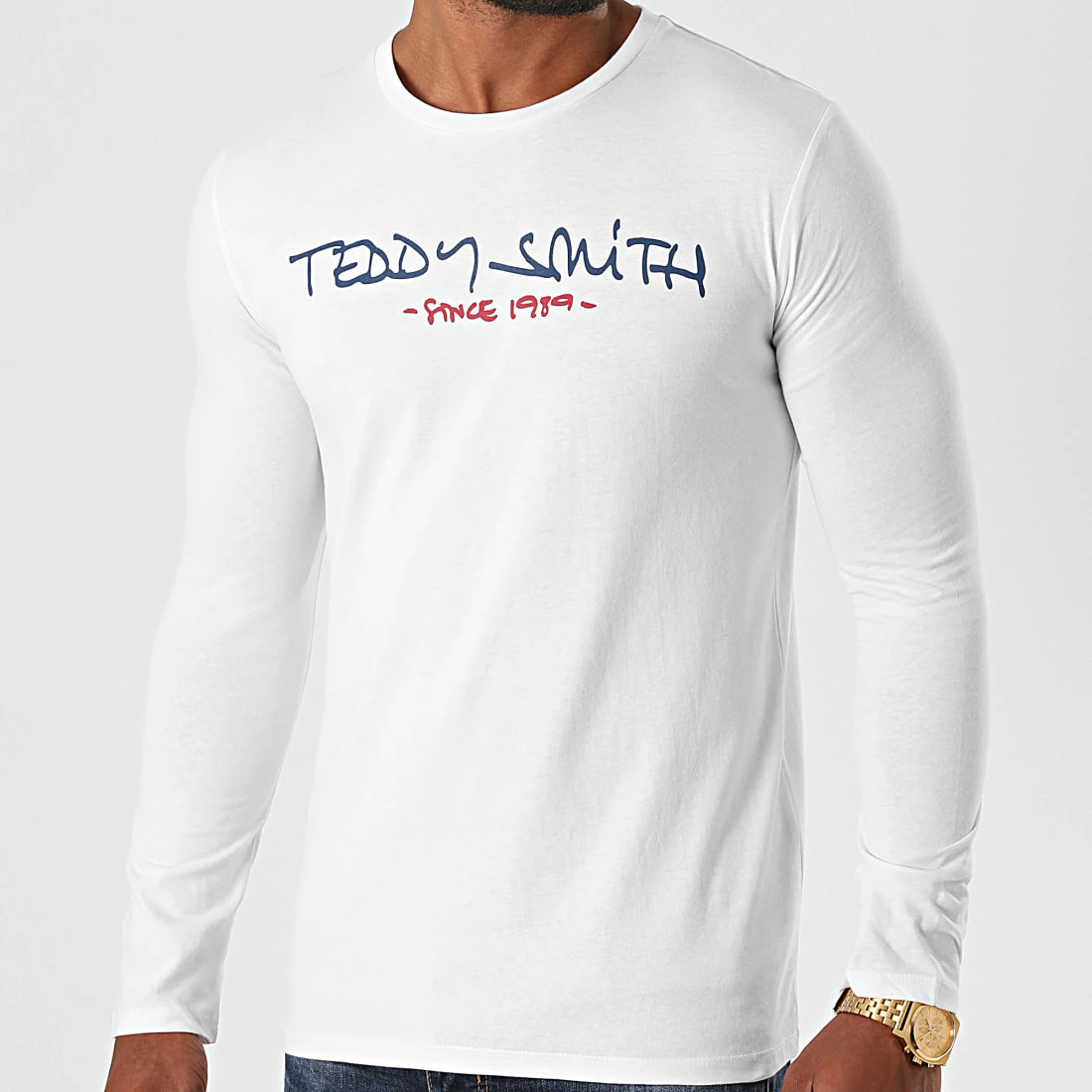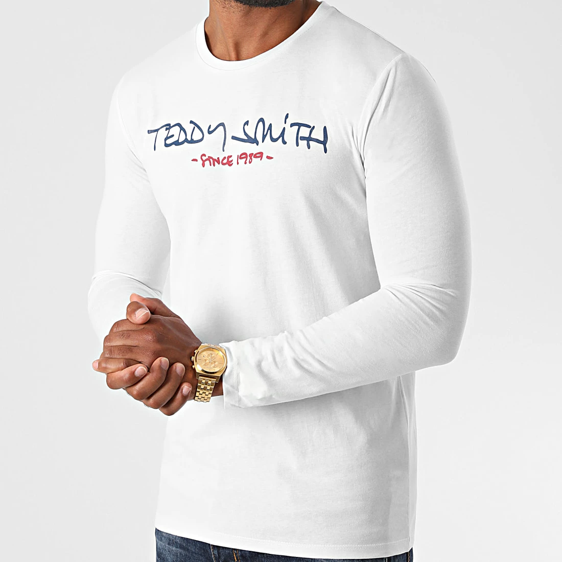 • Tee shirt manches longues en coton stretch imprimé Teddy Smith à l’avant