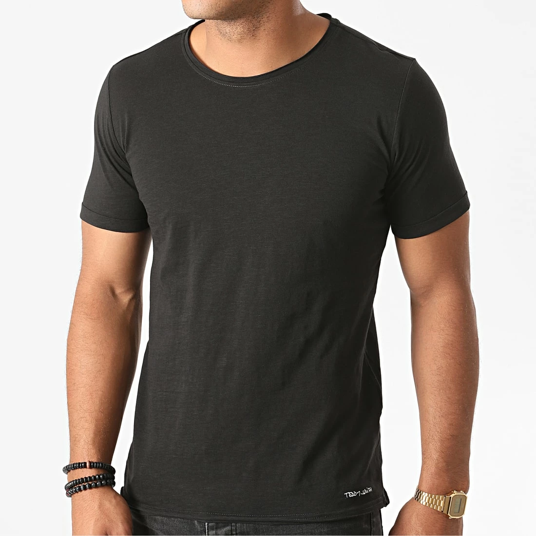 • Tee shirt en coton chiné imprimé Teddy Smith sur le bas de la taille et logo sur la nuque